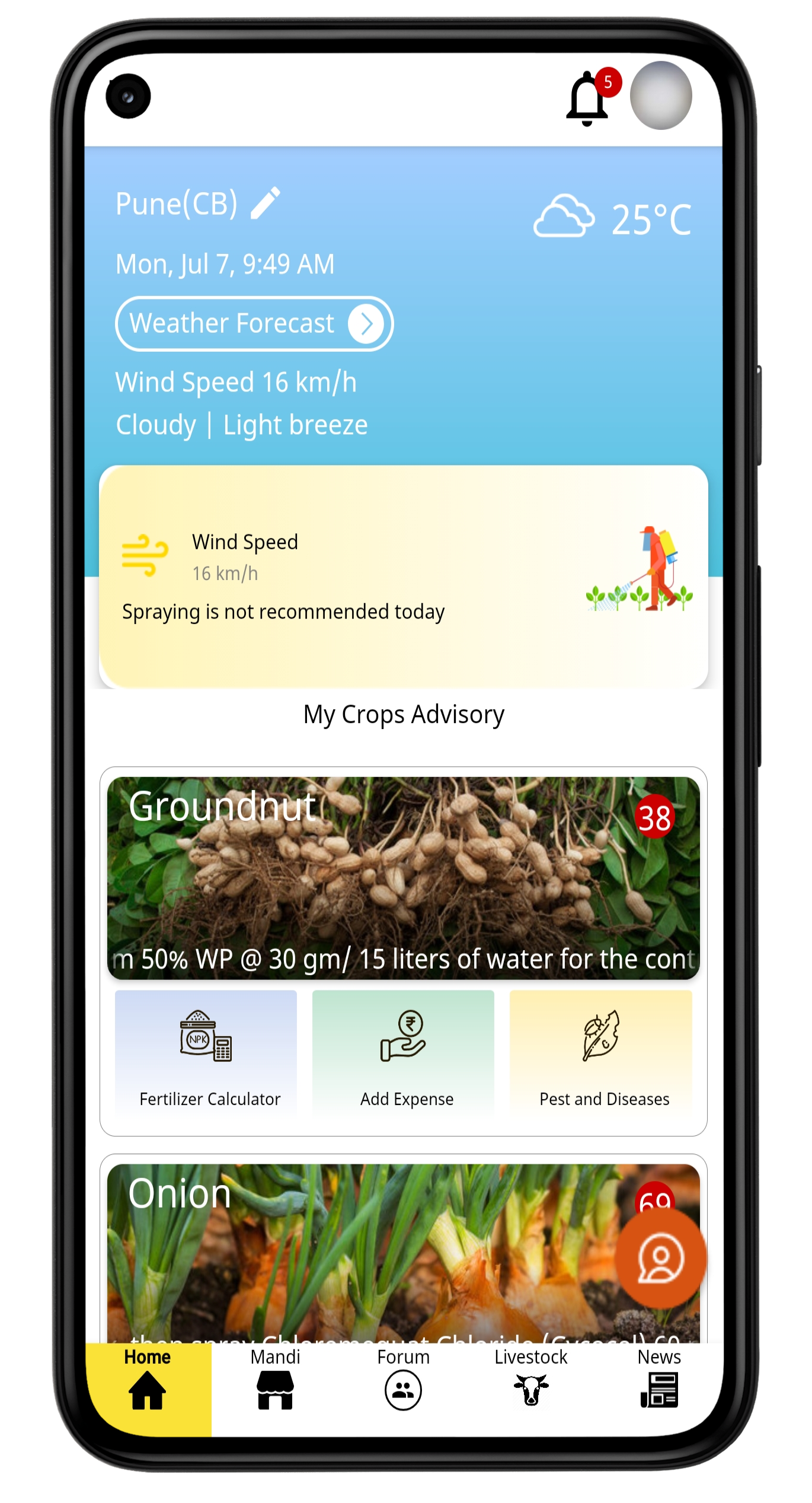Plan your farm activities based on real-time weather and 5 days forecast from Indian Meteorological Department and Open Weather Services